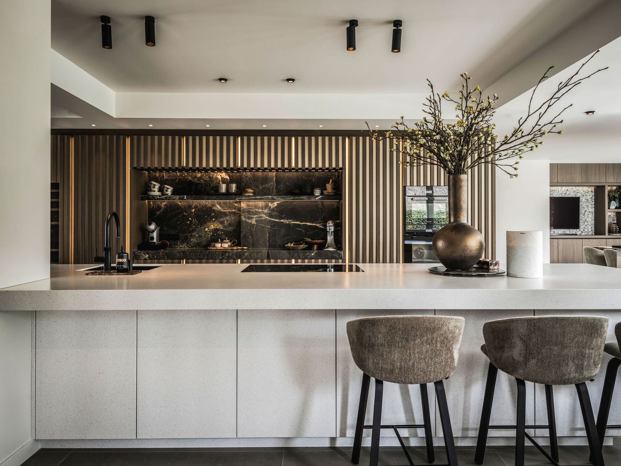 Bij deze woning uit 2018 is in 2023 de volledige beneden verdieping vergroot en opnieuw ingedeeld. De werkzaamheden bevatten een uitbreiding en installatie van een nieuwe keuken, aanbrengen van een nieuwe vloer, een nieuw lichtplan, divers maatwerk timmerwerk en het realiseren van een buitenkeuken.