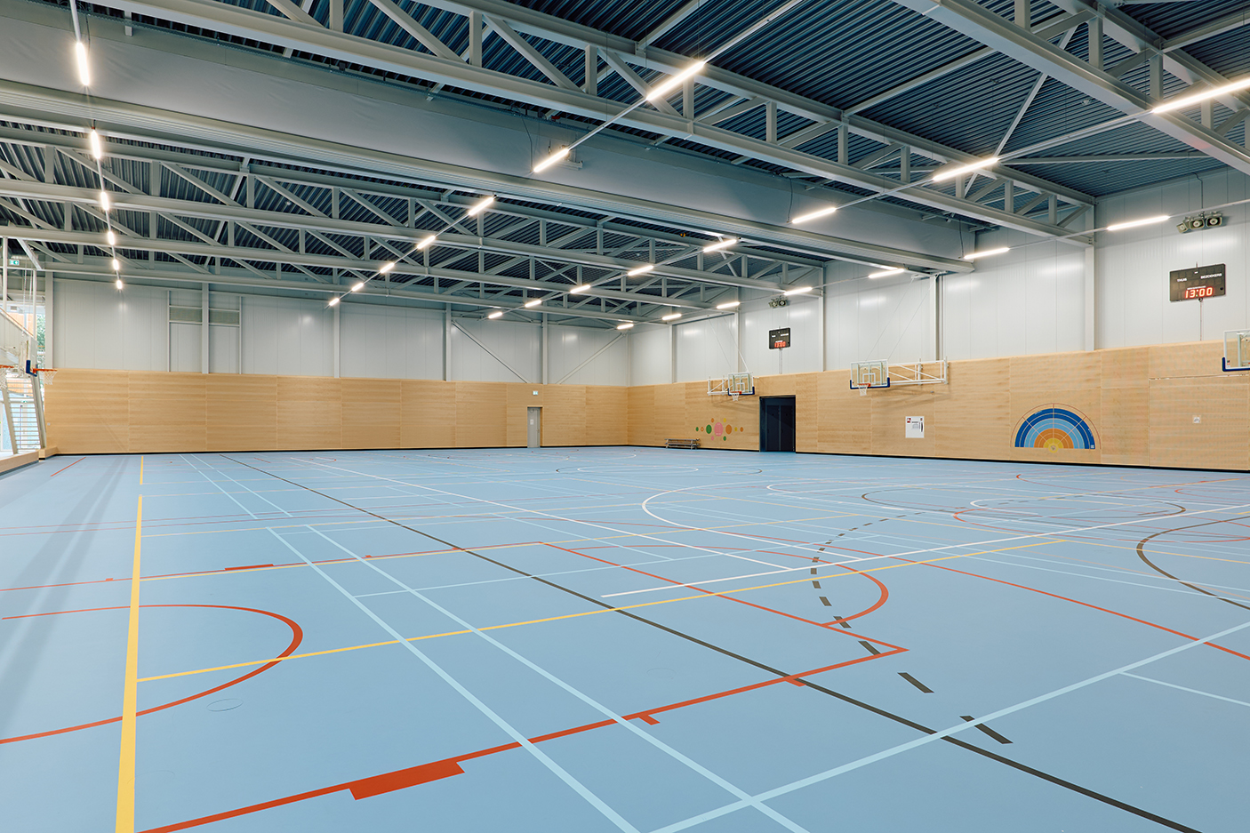 Het werk betreft de realisatie van een nieuwe klimaatneutrale sporthal en grootschalige verbouwing van de entree en kleedkamers van een bestaande sporthal. De entree en gang naar de kleedkamers van de bestaande sporthal is veel ruimtelijker gemaakt door het niveau van het dak naar 7 meter hoogte te brengen. De bestaande sporthal is energetisch gerenoveerd door de gevel en het dak te isoleren.