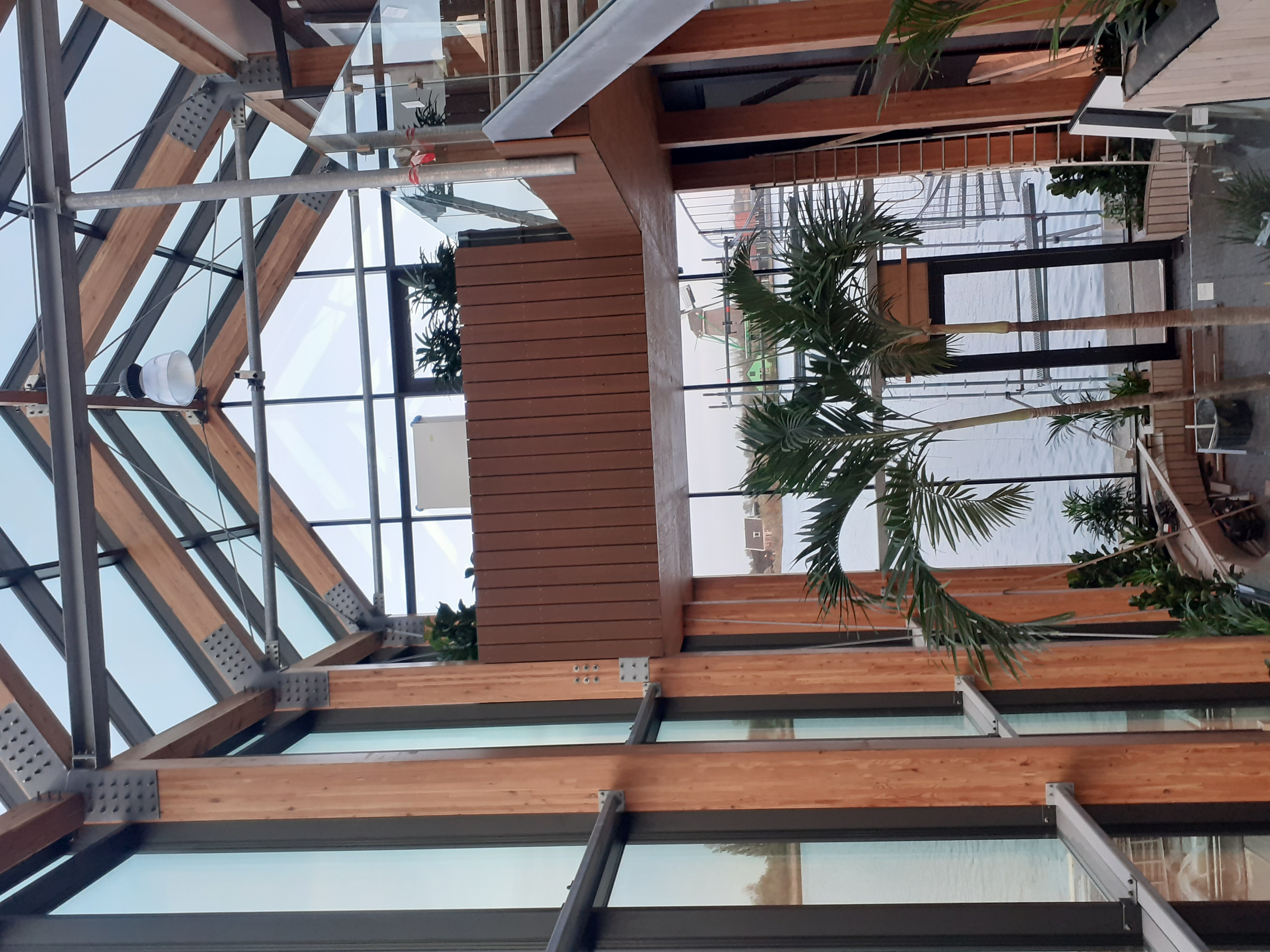 Naast het pakhuis is een glazen ontvangst- en presentatieruimte gerealiseerd. Alle houten betimmeringen zijn in onze Timmerfabriek in Leusden geprefabriceerd.